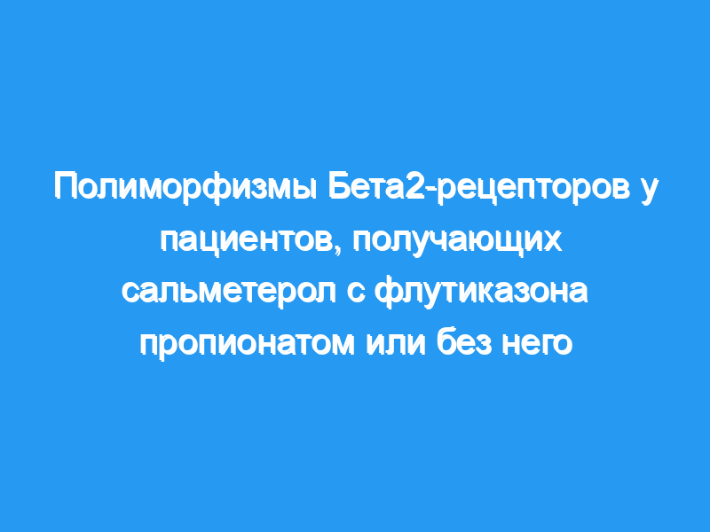 Субъекты, принимавшие альбутерол только по мере необходимости, были подвергнуты скринингу и прошли два последовательных периода открытого тестирования (8 недель на альбутероле по мере необходимости, 8 недель на ипратропии по мере необходимости). Пятьсот сорок четыре пациента были рандомизированы по генотипу Arg16Gly на прием только сальметерола или флутиказона пропионата в течение 16 недель. Изменение по сравнению с исходным уровнем утреннего пикового потока выдоха было первичной конечной точкой. Измерения и основные результаты: Реакции функции легких сохранялись на протяжении всего лечения, и не наблюдалось статистически значимых изменений по сравнению с исходным уровнем между генотипами в рамках лечения. Общие средние изменения утреннего пикового потока для сальметерола с флутиказона пропионатом составили 32,6 л/мин (Arg/Arg против Gly/Gly, 95% доверительный интервал [ДИ], -6,3, 22,1), 25,9 л/мин (Arg/Arg против Arg/Gly, 95% ДИ, -7,1, 21,3), и 24,9 л/мин (Arg/Gly против Gly/Gly, 95% ДИ, -13,0, 14,6), а для одного только сальметерола — 19,4 л/мин (Arg/Arg против Gly/Gly, 95% ДИ, -1,7, 21,4), 24,6 л/мин (Arg/Arg против Arg/Gly, 95% ДИ, -13,0, 10,6) и 12,4 л/мин (Arg/Gly против Gly/Gly, 95% ДИ, -0,2, 22,3) для генотипов Arg/Arg, Arg/Gly и Gly/Gly соответственно. Другие меры борьбы с астмой показали аналогичные результаты.