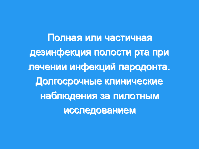 Это пилотное исследование показывает, что полная дезинфекция полости рта за один день приводит к улучшению клинического исхода при хроническом периодонтите по сравнению с удалением чешуек на квадрант с интервалом в 2 недели в течение нескольких недель.