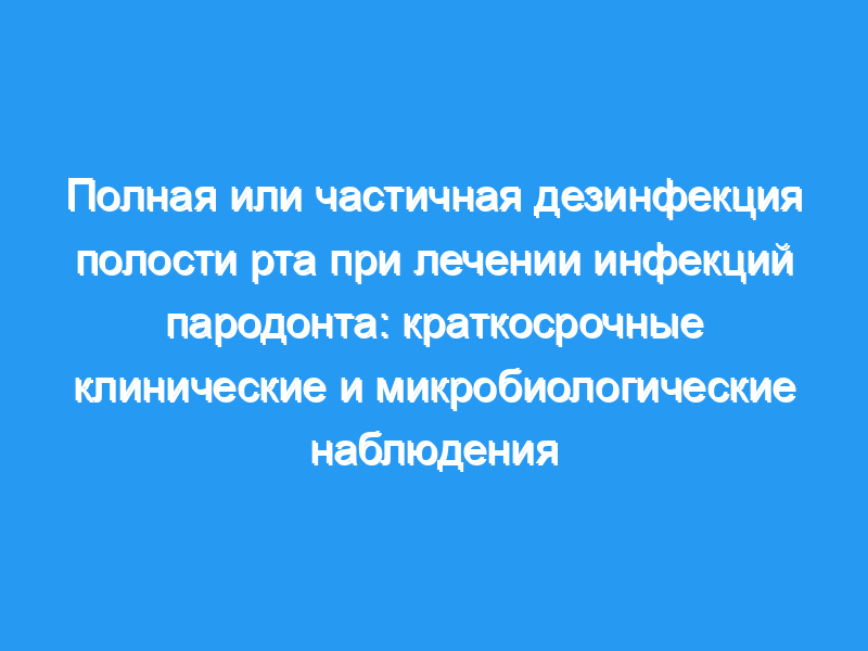 В этом исследовании изучается, как клинически, так и микробиологически, является ли полная дезинфекция полости рта в течение 24 часов значительно улучшает результаты лечения пародонта.