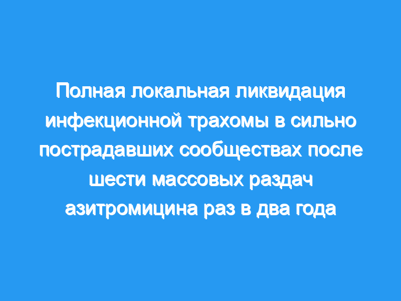 Двухлетнее массовое распределение азитромицина может локально устранить глазную хламидийную инфекцию в сильно пострадавших сообществах.