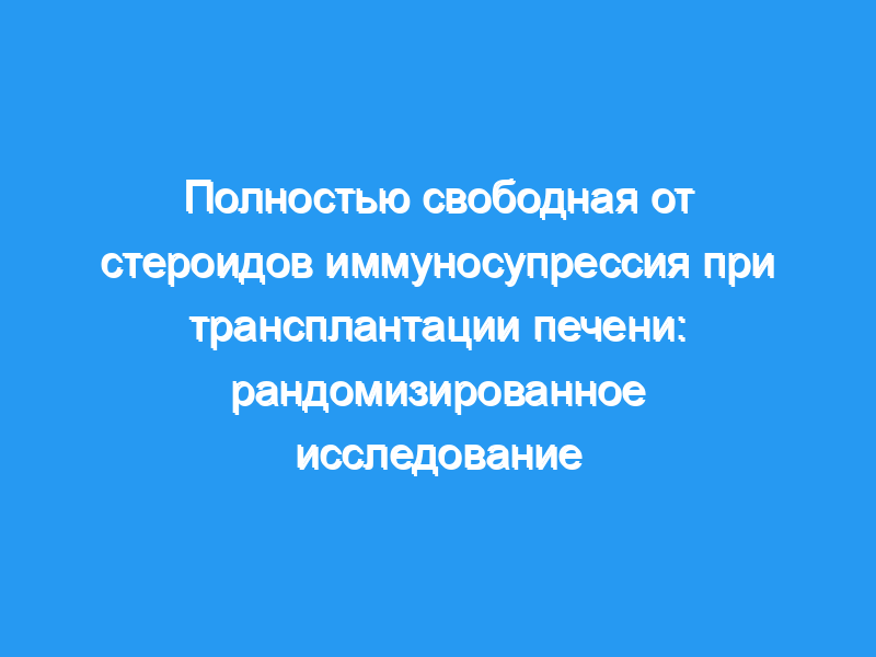 Кортикостероиды (КС) были стандартной иммуносупрессией для предотвращения и лечения отторжения. Однако КС ассоциированы с повышенным риском инфицирования, ожирения, гипертонии, гиперлипидемии, диабета и ускоренного рецидива вируса гепатита С (ВГС) после ортотопической трансплантации печени (ОЛТ). Это исследование оценивает безопасность и эффективность режима иммуносупрессии без КС у взрослых с ОЛТ.