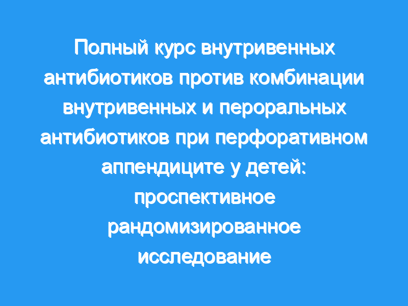 В исследование были включены дети, у которых во время лапароскопической аппендэктомии был обнаружен перфоративный аппендицит. Перфорация определялась как отверстие в аппендиксе или фекалиях в брюшной полости. Пациенты были рандомизированы на лечение антибиотиками либо с однократным ежедневным приемом цефтриаксона и метронидазола в течение минимум 5 дней (внутривенное [в/в] введение), либо с выпиской домой на пероральном приеме амоксициллина/клавуланата при соблюдении обычной диеты (в/В/В) в течение 7 дней.