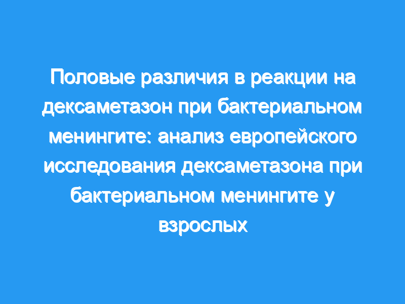 Чтобы исследовать различия в реакции на дексаметазон в зависимости от пола, мы провели post hoc анализ двойного слепого рандомизированного многоцентрового исследования дексаметазона (10 мг, 4 раз в день в течение 4 дней) по сравнению с плацебо у взрослых с бактериальным менингитом.