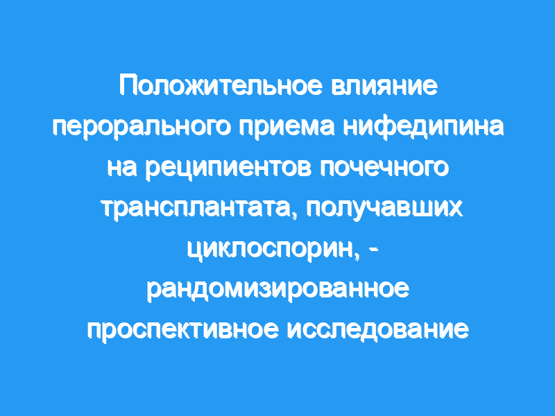 Целью этого исследования было проверить гипотезу о том, что нифедипин улучшит выживаемость трансплантата у реципиентов почечного трансплантата, получавших циклоспорин А (CyA).