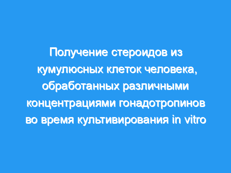 Репродуктивный центр Макгилла, Королевская больница Виктории, Университет Макгилла, Монреаль, Квебек, Канада. Пациентка(ы): Двадцать одна женщина, <, 38 лет и с нормальным менструальным циклом, которым была проведена интрацитоплазматическая инъекция сперматозоидов для вспомогательной репродукции. Вмешательство (вмешательства): Культуральная среда с фетальной бычьей сывороткой (FBS) или без нее, дополненная либо физиологической (75 мМЕ/мл), либо супрафизиологической (7500 мМЕ/мл) концентрацией гонадотропинов. Основной показатель(ы) результата: Сравнение уровней стероидов в культуральной среде. Результат(ы): Секреция эстрадиола была значительно увеличена в культуральной среде с FBS, дополненной обеими концентрациями только ФСГ, по сравнению с контролем. Однако секреция Е2 ингибировалась как концентрациями ФСГ, так и ЛГ. Уровень E2 не был обнаружен в среде без FBS даже после добавления обеих концентраций только ФСГ, только ХГЧ и ФСГ с ЛГ. Выработка прогестерона была увеличена в среде с FBS, дополненной только ФСГ, только ХГЧ и ФСГ с ЛГ по сравнению с контролем. Не было никакой разницы в уровнях прогестерона в культуральной среде без FBS, дополненной как концентрациями только ФСГ, так и только ХГЧ, по сравнению с контролем. Однако секреция прогестерона была увеличена в среде без FBS, дополненной физиологической концентрацией ФСГ с ЛГ. Заключение(ы): Культуральная среда с FBS, дополненная физиологической и супрафизиологической концентрацией FSH, стимулирует секрецию E2 из кумулюсных клеток, полученных из зрелых и незрелых ооцитов. Это говорит о том, что, возможно, нет необходимости добавлять Е2 в культуральную среду для созревания in vitro незрелых человеческих ооцитов, полученных от пациентов, проходящих стимулированные циклы.