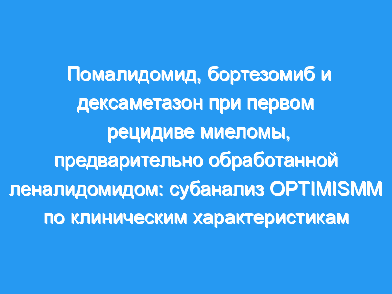 Мы оценили эффективность и безопасность помалидомида, бортезомиба и дексаметазона (PVd) по сравнению с бортезомибом и дексаметазоном (Vd) в зависимости от возраста, функции почек и цитогенетических нарушений высокого риска у пациентов с множественной миеломой при первом рецидиве, получавших леналидомид.