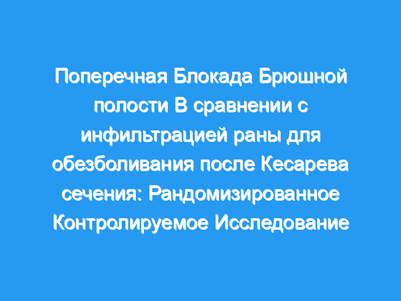 Блок поперечной плоскости живота (TAP) и инфильтрация раны местным анестетиком обеспечивают обезболивание после кесарева сечения. Исследований, сравнивающих эти 2 метода, мало, и результаты противоречивы. Это двойное слепое рандомизированное контролируемое исследование было направлено на сравнение двусторонней блокады с помощью ультразвука с однократной инфильтрацией раны местным анестетиком для обезболивания после кесарева сечения, выполненного под спинномозговой анестезией. Мы предположили, что блокада TAP уменьшит послеоперационное кумулятивное потребление фентанила через 24 часа.