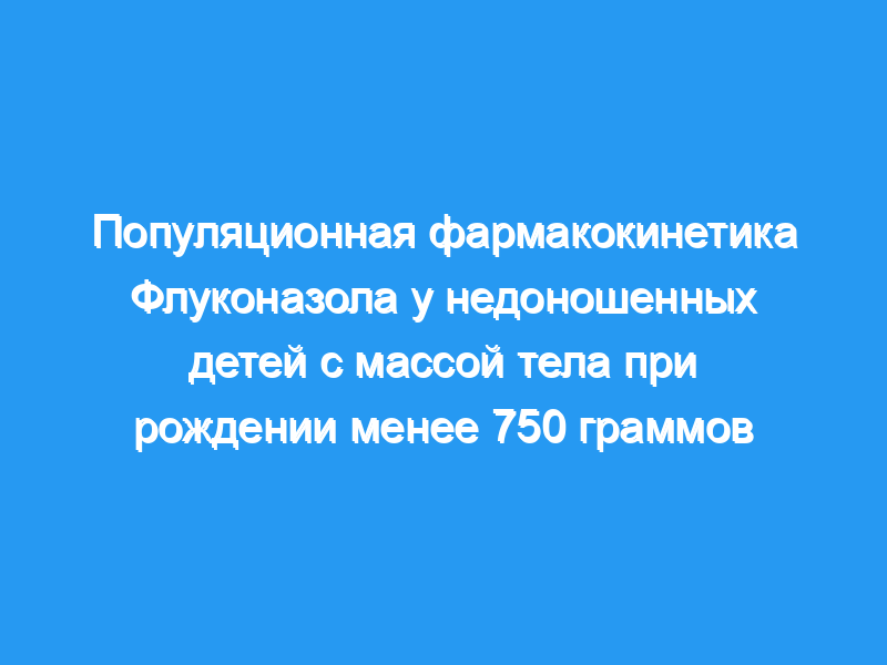 Целью данного исследования было охарактеризовать популяционную фармакокинетику (ПК) и требования к дозировке флуконазола у детей с массой тела при рождении 750 фунтов.