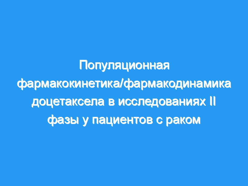 Первый курс доцетаксела PK является предиктором гематологической токсичности первого курса, а также задержки жидкости, которая носит кумулятивный характер. Пациенты с повышенным уровнем печеночных ферментов имеют снижение CL доцетаксела на 27% и подвергаются более высокому риску токсичности. В настоящее время в этой популяции проводится оценка начальной дозы 75 мг/м2. Перспективное внедрение крупномасштабной популяционной оценки PK/PD возможно на ранних этапах разработки лекарств, и этот подход позволяет получить клинически значимые результаты.