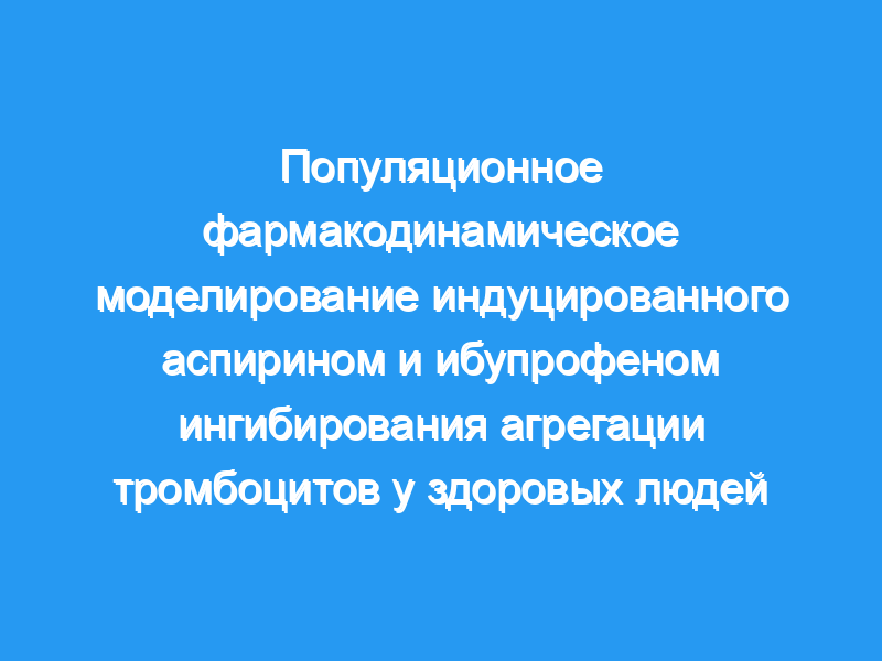 Десять здоровых добровольцев были включены в однослепое рандомизированное трехстороннее перекрестное исследование. Лечение состояло из однократного приема внутрь аспирина (325 мг) и ибупрофена (400 мг) и одновременного приема аспирина (325 мг) и ибупрофена (400 мг). Агрегацию тромбоцитов цельной крови Ex vivo, индуцированную коллагеном (1 мкг/мл) или арахидоновой кислотой (0,5 ммоль/л), измеряли методом импедансной агрегометрии. Разработка модели и оценка параметров популяции были выполнены с использованием нелинейного моделирования со смешанными эффектами, реализованного в NONMEM.