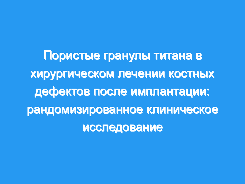 Пористые титановые гранулы (PTG) могут иметь потенциал в качестве замены остеокондуктивного костного трансплантата для лечения костных дефектов после имплантации. Целью данного исследования был анализ клинических и рентгенографических результатов периимплантационных костных дефектов после лечения PTG.