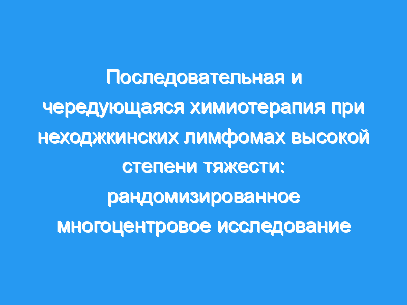 В многоцентровом исследовании III фазы 146 ранее не лечившихся пациентов с неходжкинскими лимфомами высокой степени тяжести II-IV стадии были рандомизированы для получения либо четырех циклов CHOEP (циклофосфамид 750 мг/м2 внутривенно 1 раз в день, доксорубицин 50 мг/м2 внутривенно 1 раз в день, винкристин 2 мг внутривенно 1 раз в день, этопозид 100 мг/м2 в/в 3-5 дней, преднизолон 100 мг в/в 1-5 дней) (группа лечения А), или четыре цикла химиотерапии hCHOP (циклофосфамид 1200 мг/м2 в/в 1 день, доксорубицин 40 мг/м2 в/в 1 + 2 дня, винкристин 2 мг в/в 1 день, преднизолон 100 мг в/в 1-5 дней), чередующийся с внутривенным введением (ифосфамид 1500 мг/м2 в/в 1-5 дней, виндезин 3 мг/м2 в/в 1 день, этопозид 120 мг/м2 в/в 3-5 дней, преднизолон 100 мг в/в 1-5 дней) (группа лечения В). После четырех циклов химиотерапии всем пациентам с полной или частичной ремиссией без сохраняющихся экстранодальных заболеваний было проведено комплексное облучение в полевых условиях общей дозой 35 Гр.