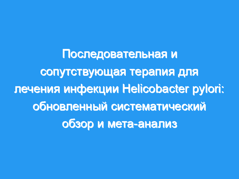 Последовательная и сопутствующая терапия — это два инновационных метода эрадикации Helicobacter pylori (H. pylori). Однако сравнительная эффективность и безопасность этих методов лечения являются спорными. Поэтому мы стремились провести обновленный систематический обзор и мета-анализ исследований, в которых сравнивались эти два метода лечения.