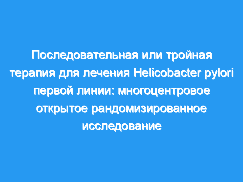 Неизвестно, может ли последовательное лечение заменить тройную терапию в качестве стандартного лечения инфекции Helicobacter pylori. Мы сравнили эффективность последовательного лечения в течение 10 дней и 14 дней с тройной терапией в течение 14 дней при лечении первой линии.