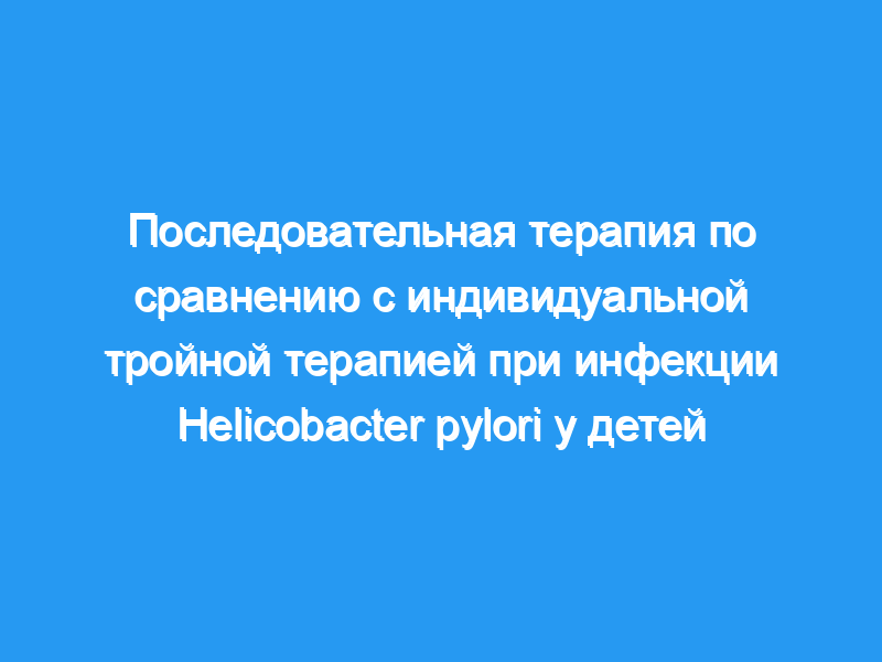 Последовательное лечение очень эффективно для уничтожения H. pylori у детей, за исключением штаммов, устойчивых к CLA. Последовательное лечение может быть использовано в качестве терапии первой линии, но только в районах с низким уровнем резистентности к CLA.
