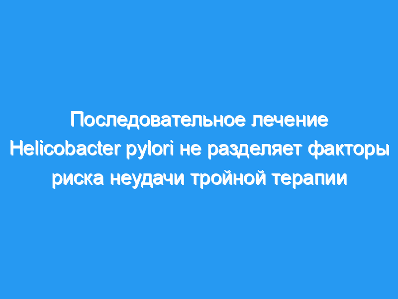 Наши данные свидетельствуют о том, что последовательная терапия не зависит от бактериальных факторов и факторов хозяина, которые до сих пор предсказывали исход обычных эрадикационных методов лечения.
