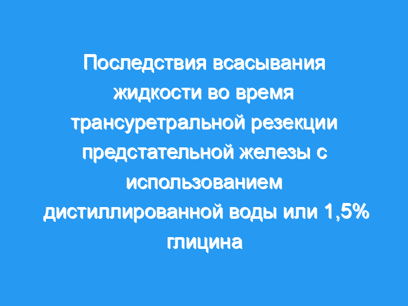 В этом проспективном и рандомизированном исследовании сравнивались последствия применения двух ирригационных жидкостей, дистиллированной воды и глицина при трансуретральной простатэктомии.