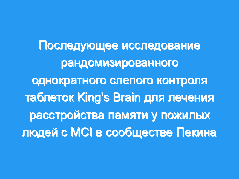 Оценить влияние таблеток King’s Brain (Сложный экстракт китайского женьшеня из трав) на лечение и замедление ухудшения памяти у пожилых людей с умеренными когнитивными нарушениями (MCI) в сообществе путем годичного наблюдения нейропсихологов. Метод: 75 пациентов с MCI были отобраны из сообщества Бэйсиньцяо Пекина по критерию отсечения 0,0/ 0,5 по CDR и были случайным образом распределены в группу лечения (n = 30 случаев), которым дали 4 таблетки сложного экстракта китайского женьшеня (King’s Brain) с 2 таблетками плацебо и положительный результат контрольная группа (n = 30 случаев), получавшая 2 таблетки Пирацетама с 4 таблетками плацебо, а также группа плацебо (n = 15 случаев), получавшая плацебо из 4 таблеток и 2 таблеток. Все испытуемые принимали это лекарство 3 раза в день в течение 3 месяцев. В этом исследовании использовался контроль с одинарным слепым и двойным формованием. В начальной и промежуточной точке (через 3 месяца), а также в конце наблюдения (через год) после трехмесячной медикаментозной терапии все субъекты были оценены с использованием батареи, состоящей из MMSE и 5 элементов памяти на батарее BNPT. Результат: В группе лечения показатель MMSE 27.50 +/- 1.68 был увеличен до 28.27 +/- 1.70 через 3 месяца, но снизился до 26.90 +/- 1.90 после одного года лечения. Однако последний показатель был выше, чем в группе плацебо 26.33 +/- 1.03 (P <, 0,05). Оценка теста на вербальное обучение была значительно увеличена с 68.73 +/- 28.74 на исходном уровне для 87.33 +/- 29.78 на момент наблюдения в группе лечения, что было значительно выше, чем в группе плацебо (P <, 0,01). Общее количество элементов памяти на батарее BNPT было значительно увеличено с 78.23 +/- 28.98 на исходном уровне для 93.53 +/- 35.56 на момент наблюдения в группе лечения, выше, чем в группе пирацетама (P <, 0,05) и группе плацебо (P <, 0,01).
