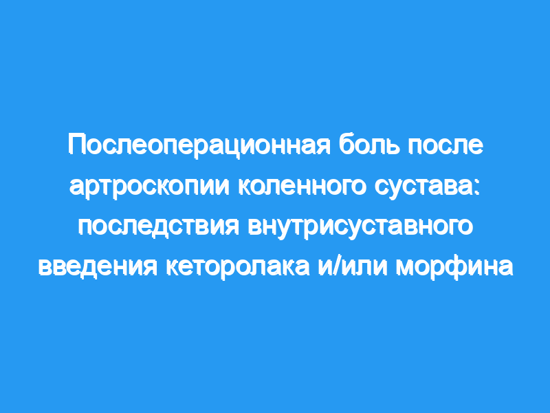 Это было рандомизированное двойное слепое проспективное исследование с участием 100 здоровых пациентов в возрасте от 15 до 60 лет.. Артроскопию коленного сустава проводили с помощью LA с использованием 40 мл прилокаина (5 мг/мл) с адреналином (4 мкг/мл). В конце операции внутрисуставно вводили катетер и вводили один из следующих растворов, разведенных до общего объема 40 мл: группа Р (40 мл физиологического раствора), группа М (3 мг морфина), группа К30 (30 мг кеторолака), группа К60 (60 мг кеторолака) и группа КМ (3 мг морфина + 30 мг кеторолака). Показатели боли по визуальной аналоговой шкале (ВАШ) (0-100 мм) измеряли до операции и через 30, 60, 90, 120 минут после операции, а затем через 4, 8, 24 и 48 часов в покое и при движении колена. Было зарегистрировано общее количество таблеток дистальгетика (325 мг парацетамола + 32,5 мг декстропропоксифена), потребленных в течение 48 часов после операции.