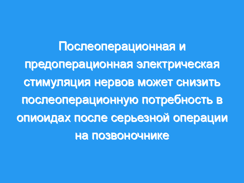 Послеоперационная терапия TENS, а также комбинация предоперационной и послеоперационной терапии TENS снижают послеоперационную потребность в пиритрамиде при крупных операциях на позвоночнике безопасным и простым способом, без системных побочных эффектов.