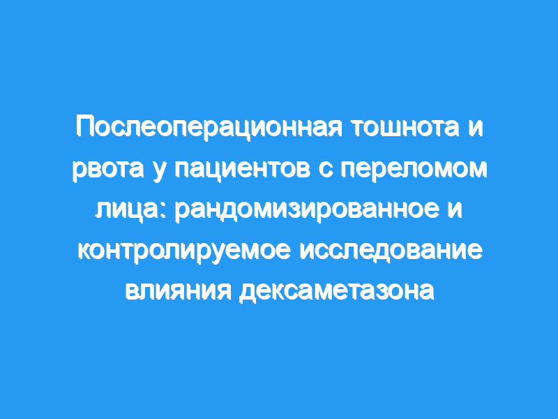 Конкретной целью было изучить влияние периоперационного дексаметазона на PONV. В этом проспективном исследовании было проанализировано в общей сложности 119 взрослых пациентов с переломами лица.