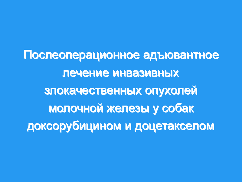 Результаты лечения только после операции неудовлетворительны у собак с инвазивными злокачественными опухолями молочной железы. Гипотеза: Адъювантный доксорубицин или доцетаксел улучшат результаты лечения у собак со злокачественными опухолями молочной железы высокого риска, и применение доцетаксела будет возможно у больных собак. Животные: Использовали тридцать одну собаку со злокачественными опухолями молочной железы II и III гистологических стадий (сосудистая или лимфатическая инвазия, метастазирование в регионарные лимфатические узлы или отдаленные метастазы).
