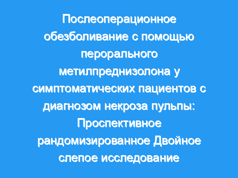 Целью этого проспективного рандомизированного двойного слепого плацебо-контролируемого исследования была оценка послеоперационной боли с использованием режима перорального приема метилпреднизолона у симптоматических пациентов с некрозом пульпы и симптоматическим верхушечным периодонтитом, периапикальной рентгеноконтрастностью и предоперационной умеренной или сильной болью.