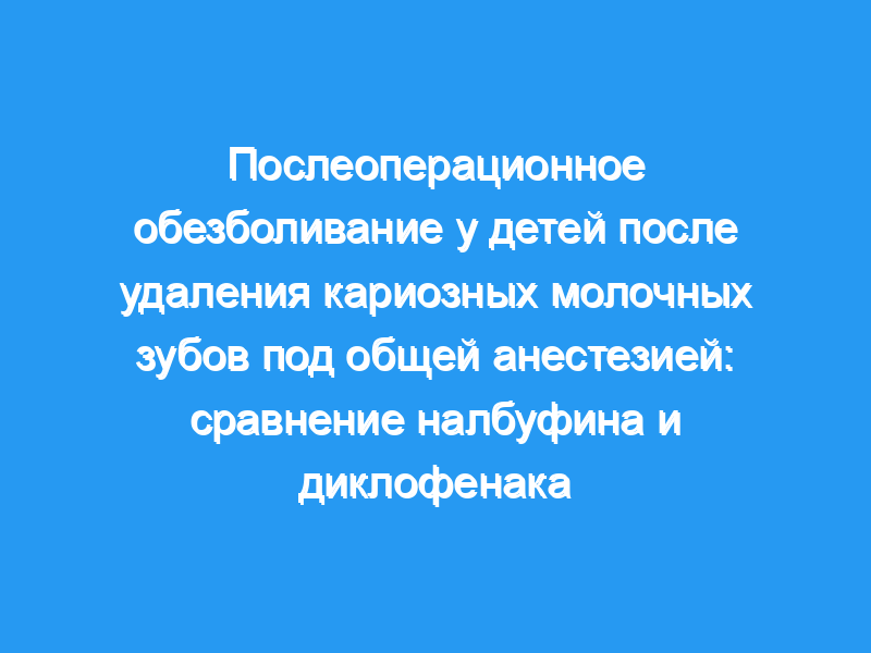 В рандомизированном двойном слепом исследовании 60 детям, перенесшим удаление кариозных молочных зубов под дневной общей анестезией, было назначено внутривенное введение налбуфина гидрохлорида в дозе 0,3 мг кг-1 (n = 21), одной или нескольких свечей диклофенака в дозе 12,5 мг в дозе 1-2 мг кг.-1 (n = 19) или отсутствие обезболивания (n = 20). Продолжительность анестезии была больше в группе диклофенака (9,6 мин, SD 3,5) по сравнению с контрольной (7,2 мин, SD 2,6) и налбуфином (6,9 мин, SD 3,0) соответственно (P <, 0,05). Не было статистически значимых различий в показателях послеоперационной боли в течение 45-минутного послеоперационного периода, изученного между тремя группами с использованием объективного показателя боли.
