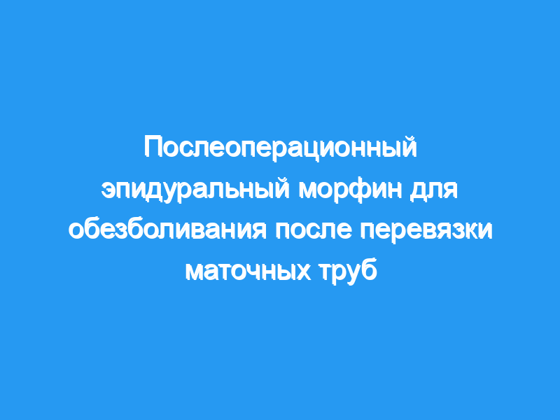 Мы предположили, что эпидуральный морфин, как часть мультимодальной схемы обезболивания, уменьшит послеоперационную боль и потребность в системной анальгезии после PPTL. В двойном слепом исследовании пациенты были рандомизированы для получения эпидурального физиологического раствора или морфина в дозе 2 мг, 3 мг или 4 мг после эпидуральной анестезии для PPTL. В послеоперационном периоде каждые 6 ч вводили ибупрофен в дозе 600 мг, и пациенты могли запрашивать ацетаминофен в дозе 325 мг/гидрокодон в течение 10 мин.