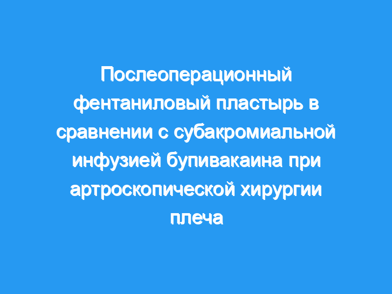 Целью нашего исследования было сравнить эффективность субакромиальной инфузии бупивакаина и трансдермального фентанилового пластыря в лечении послеоперационной боли после артроскопической операции на плече.