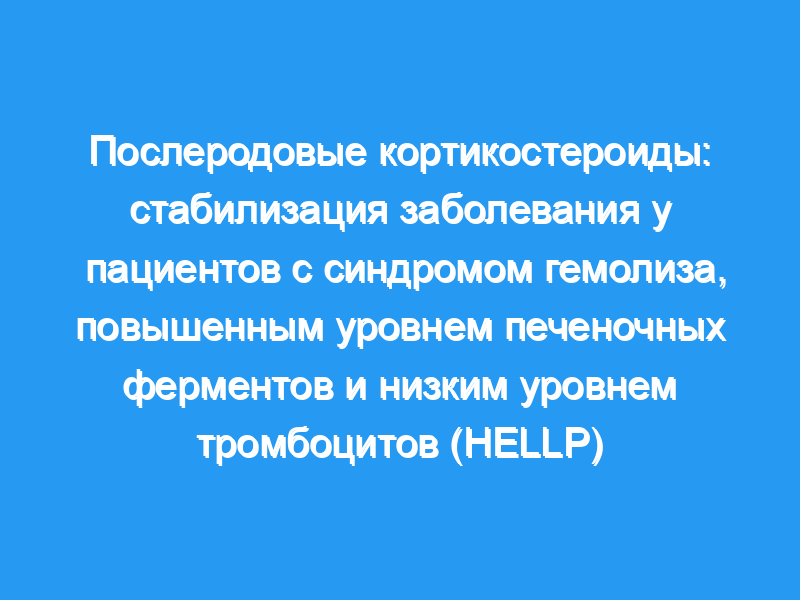 Стабилизация и значительное улучшение лабораторных и клинических параметров, связанных с синдромом HELLP, произошли у женщин, получавших высокие- доза дородовых кортикостероидов, определяемая по количеству тромбоцитов у матери, выделению мочи, лактатдегидрогеназе, аланинаминотрансферазе и отсрочке родов. Мы считаем, что результаты этого исследования позволяют нам предположить, что этот терапевтический подход может улучшить уход за матерью и плодом за счет отсрочки родов некоторых ожидаемых плодов, уменьшить потребность в материнском переливании продуктов крови, снизить неонатальную заболеваемость или смертность от множественных системных эффектов и способствовать более безопасному переводу больной матери в стационар. центр третичной медицинской помощи для оптимального перипартального ухода.