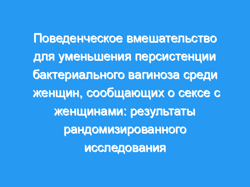Бактериальный вагиноз (БВ) часто встречается у лесбиянок, и лечение оказывается безуспешным в 28% случаев. Риски включают сексуальное поведение, которое приводит к передаче вагинальной жидкости. Авторы измерили эффективность поведенческого вмешательства для уменьшения передачи вагинальной жидкости половым путем между половыми партнерами женского пола в снижении персистенции БВ.