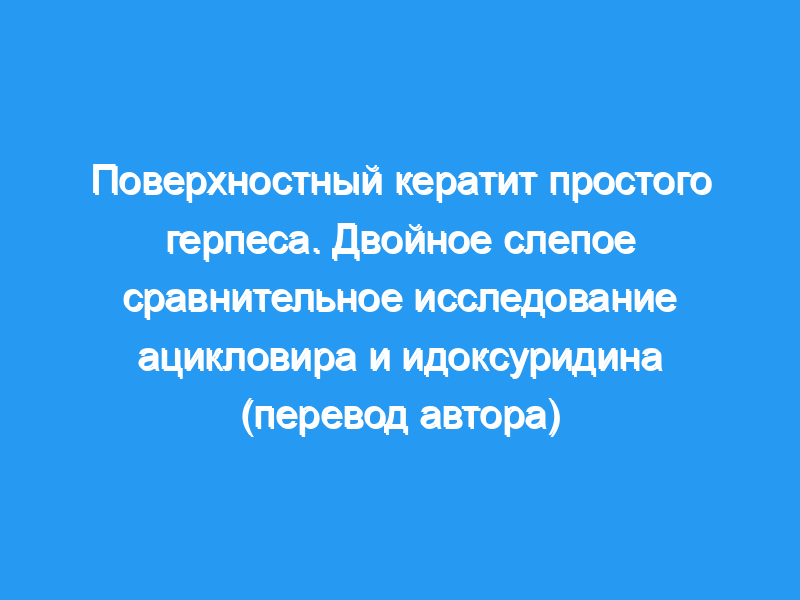 В двойном слепом рандомизированном исследовании 52 пациента с поверхностным кератитом простого герпеса лечились новым противовирусным соединением, мазью ацилкловир (ACV) 3% или мазью идоксуридин (IDU) 0,5%.