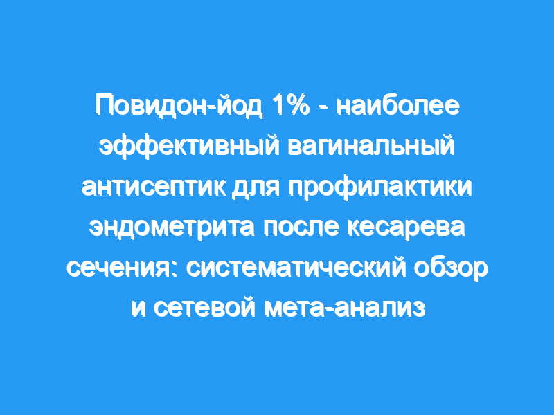 Для профилактики эндометрита мы определили 23 исследования, в которых приняли участие 7097 женщин, которым было назначено следующее лечение: повидон-йод (1%, 5%, 10%), хлоргексидин (0,2%, 0,4%), гель метронидазола, цетримид или обычный физиологический раствор решение/отсутствие лечения. Прямые и косвенные попарные сравнения показали, что по сравнению с физиологическим раствором или отсутствием лечения все антисептические препараты снижали частоту эндометрита (5,2% против 9,1%, отношение шансов 0,48, 95% доверительный интервал 0,35-0,65, 22 исследования/6994 женщины). Индивидуально, повидон-йод (отношение шансов 0,43, 95% доверительный интервал 0,28-0,64, 16 исследований/5968 женщин), цетримид (отношение шансов 0,34, 95% доверительный интервал 0,13-0,90, 1 исследование/200 женщин) и метронидазол (отношение шансов 0,38, 95% доверительный интервал 0,16-0,90, 1 исследование/224 женщины) значительно снижал риск развития эндометрита. Рейтинги вагинальных препаратов показали, что повидон-йод 1% с наибольшей вероятностью (72,7%) является наиболее эффективным средством для профилактики эндометрита. Что касается вторичных исходов послеоперационной раневой инфекции и лихорадки, то значительное снижение было обнаружено только при применении повидон-йода (отношение шансов 0,61, 95% доверительный интервал 0,48-0,78, 16 исследований/5968 женщин, и отношение шансов 0,58, 95% доверительный интервал 0,40-0,83, 12 исследований/4667 женщин). Анализ подгрупп также показал, что повидон-йод значительно снижает риск развития эндометрита у рожениц (отношение шансов 0,42, 95% доверительный интервал 0,20-0,88, 5 исследований/1211 женщин) с разрывом плодных оболочек (отношение шансов 0,21, 95% доверительный интервал 0,10-0,44, 4 исследования/476 женщин) и перенесших плановое кесарево сечение (отношение шансов 0,39, 95% доверительный интервал 0,27-0,57, 8 исследований/1825 женщин).