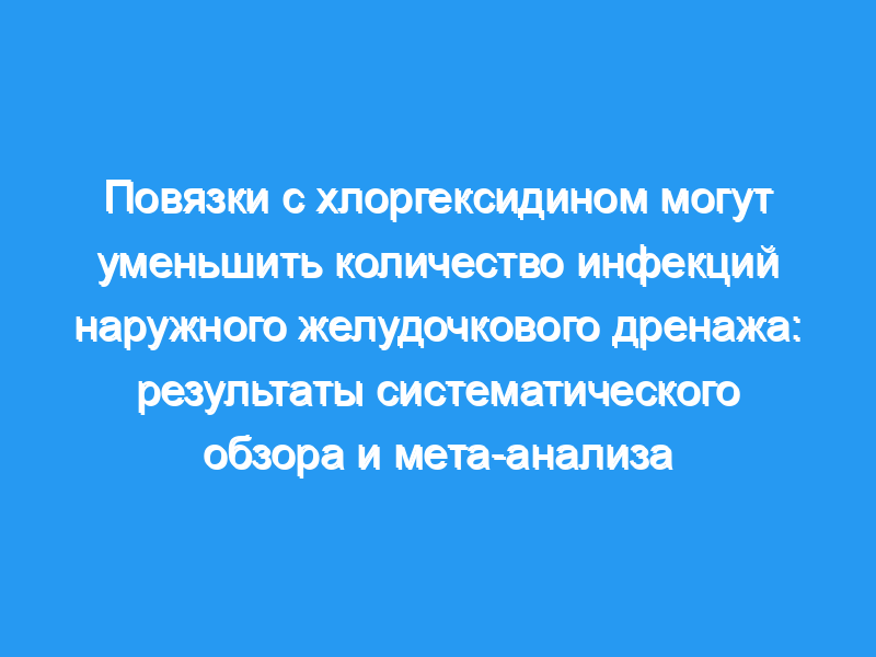 В общей сложности было включено 880 пациентов со средним возрастом 57,7 лет (95% доверительный интервал (ДИ) 57,4-58,0 лет). При анализе первичных результатов в группе перевязки хлоргексидином частота EVDAI была значительно ниже (1,7% против 7,9%, разница в риске (RD) = 0,07, 95% ДИ 0,00-0,13, P=0,04). В заключение, повязки с хлоргексидином могут снизить частоту БВВЭД, но требуют дальнейшего изучения в рандомизированных исследованиях для окончательного определения эффективности.