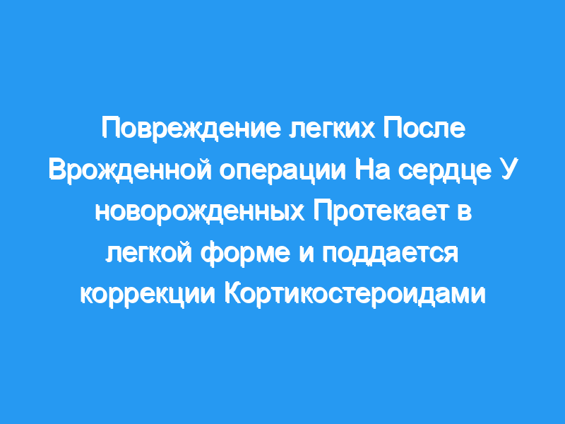 Педиатрическая университетская больница высшего образования. Участники: Сорок новорожденных (возраст ≤28 дней), перенесших операцию на врожденном сердце с искусственным кровообращением. Вмешательства: После введения анестезии пациенты были распределены случайным образом для внутривенного введения либо 2 мг /кг метилпреднизолона, либо плацебо в, за которым следовал гидрокортизон или плацебо болюсно через шесть часов после отлучения от CPB в течение пяти дней следующим образом: 0,2 мг /кг / ч в течение 48 часов, 0,1 мг/кг /ч в течение в течение следующих 48 часов и 0,05 мг/кг/ч в течение следующих 24 часов. Измерения и основные результаты: Оценка отека легких при рентгенографии грудной клетки была ниже в SDC, чем в группе плацебо в первый послеоперационный день (первый этап) (р = 0,03) и на втором и третьем этапах (р = 0,03). Кроме того, в группе плацебо было отмечено умеренное увеличение показателя отека на 0,9, в то время как в группе SDC показатель отека оставался на дооперационном уровне. Послеоперационная динамическая податливость дыхательной системы была выше в группе SDC до третьего этапа (p <, 0,01). Однако послеоперационная оксигенация, продолжительность искусственной вентиляции легких и биомаркеры воспаления и окислительного стресса в трахеальном аспирате, а именно интерлейкин-6, интерлейкин-8, резистин и 8-изопростан, не показали различий между группами.