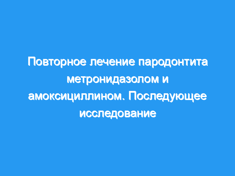Рандомизированное, тройное слепое, контролируемое клиническое исследование было использовано для определения эффекта системного введения M+A в качестве единственной терапии при прогрессирующем периодонтите у взрослых. В исследование были включены сорок шесть пациентов с пародонтитом средней и тяжелой степени у взрослых, у которых за предыдущие 2 месяца была отмечена потеря прикрепления >, or =2 мм по крайней мере в 2 местах. Испытуемых случайным образом распределили в группу, получавшую 21 таблетку метронидазола 250 мг плюс амоксициллин 500 мг, или в группу, получавшую плацебо (по 1 таблетке каждые 8 часов в течение 1 недели). Пациенты обследовались каждые 2 месяца в течение 12 месяцев. Режим М+А или плацебо повторяли через 4 и 8 месяцев. Не было предпринято никаких усилий для изменения привычек полости рта пациентов, и они не получали никакой дополнительной терапии. Различия между группами оценивали с помощью U-критерия Манна-Уитни. Различия через каждые 2 месяца в каждой группе оценивались с помощью теста ANOVA.