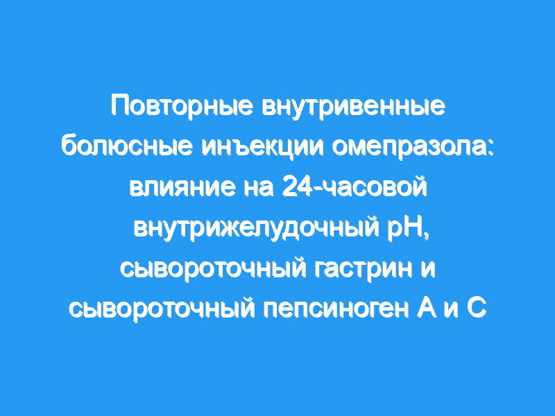 Мы определили влияние четырехкратного ежедневного внутривенного введения омепразола на 24-часовую внутрижелудочную кислотность, сывороточный гастрин и сывороточный пепсиноген А и С у 10 испытуемых натощак (средний возраст 23,5 года). Два режима дозирования (80-20-20-20 мг и 80-40-40-40 мг) сравнивались в рандомизированном плацебо-контролируемом перекрестном исследовании.