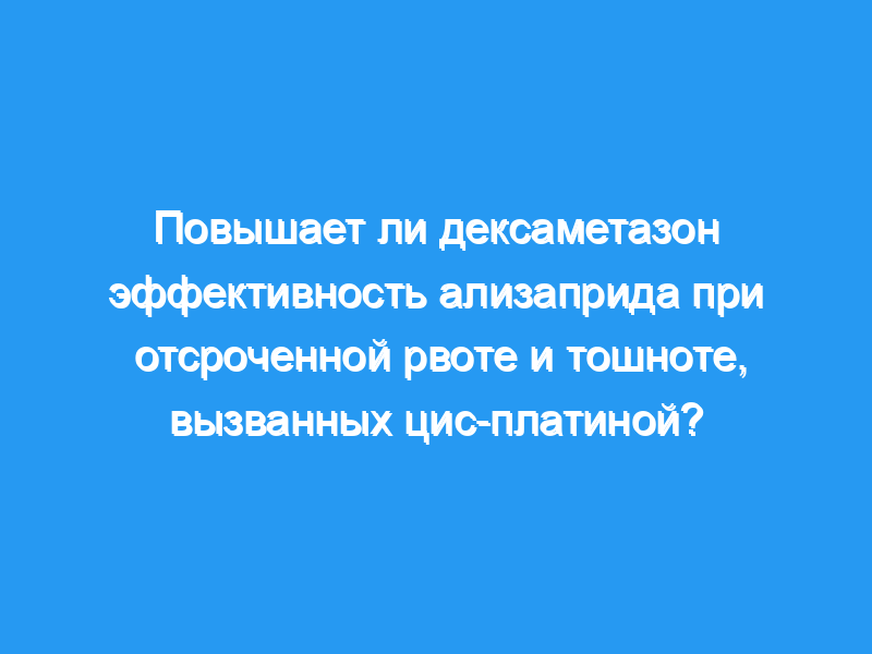 Таким образом, пациенты, получавшие лечение от рака яичников, получали 5 мг трописетрона (Навобана) плюс 20 мг дексаметазона. для профилактики острой рвоты и тошноты при цис-платиносодержащей химиотерапии (50 мг). Через двадцать четыре часа после начала химиотерапии 49 пациентов были рандомизированы для получения 3 х 100 мг ализаприда (Вергентана) плюс плацебо (группа А) и 47 пациентов для получения 3 х 100 мг ализаприда плюс 3 х 4 мг дексаметазона (группа В) в течение 3 дней в зависимости от частоты острых рвота начинается на 2-й день. Самочувствие обеих групп сравнивалось с использованием объективных и субъективных параметров (Роттердамский контрольный список симптомов). Основной контроль острой рвоты был достигнут в 87,5% случаев.