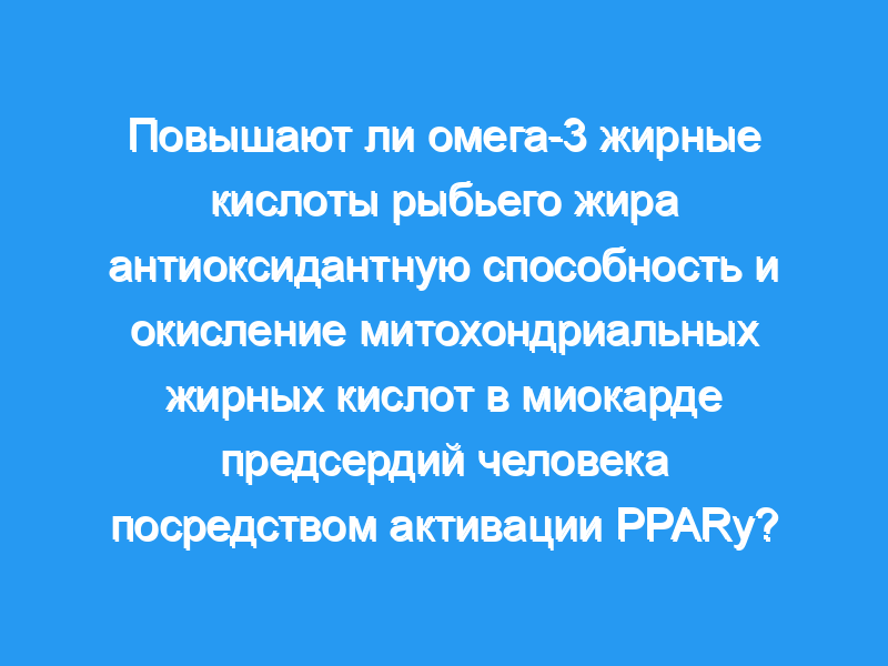 Эти результаты приводят к нашей гипотезе о том, что активация PPARγ является механизмом, с помощью которого n-3 ПНЖК рыбьего жира усиливают митохондриальную жировую кислотное окисление и антиоксидантная способность в миокарде предсердий человека, и что этот предоперационный терапевтический режим может быть оптимальным для смягчения окислительного/воспалительного стресса, связанного с кардиохирургией.