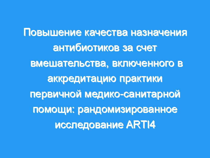 Чрезмерное назначение антибиотиков является серьезной проблемой. Однако комплексные вмешательства, направленные на повышение качества назначения антибиотиков, их внедрение и устойчивость, оказались трудными. Мы проанализировали эффективность вмешательства, включенного в цикл качества аккредитации практики первичной медико-санитарной помощи, в отношении количества и качества назначения антибиотиков при инфекциях дыхательных путей и уха (РТИ).