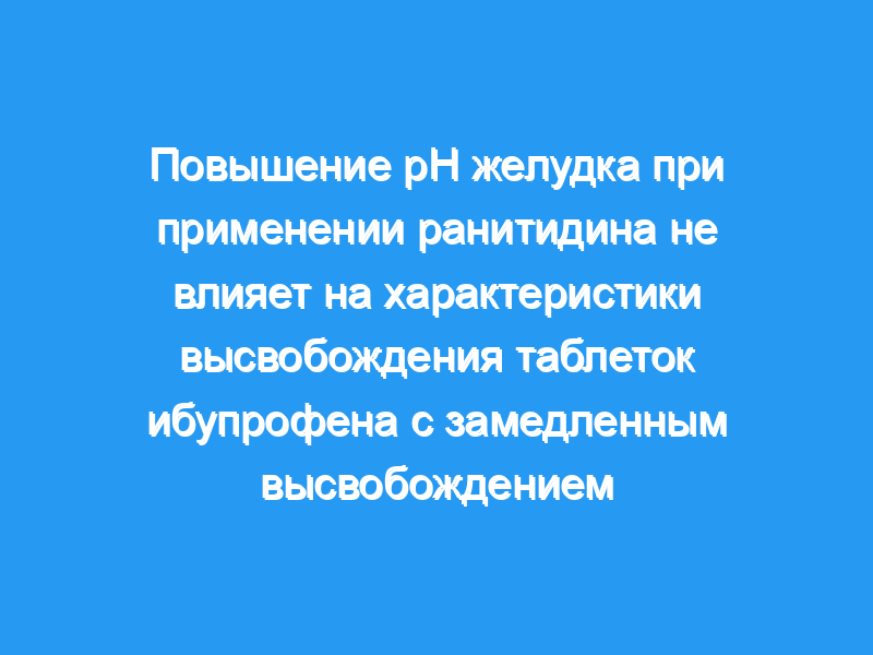 В отсутствие ранитидина рН оставался в основном ниже рН 3. Уровни ибупрофена в сыворотке крови измеряли в течение 24 ч, а мочу собирали в течение 48 ч после каждого лечения.