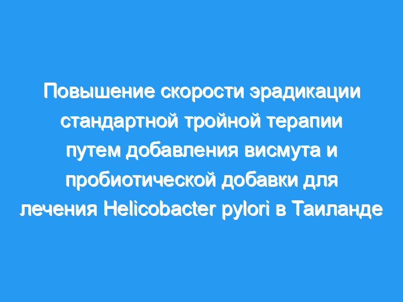 Helicobacter pylori (H. pylori) остается важной причиной рака желудка и язвенной болезни во всем мире. Лечение инфекции H. pylori является одним из эффективных способов профилактики рака желудка. Однако стандартная тройная терапия для эрадикации H. pylori больше не эффективна во многих странах, включая Таиланд. Это исследование было разработано для оценки эффективности добавления висмута и пробиотика к стандартной тройной терапии для эрадикации H. pylori.