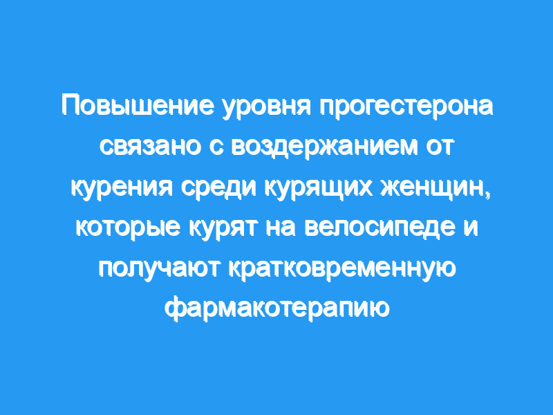 Это исследование было первым, в котором была выявлена связь между уровнем прогестерона (повышением) и исходами воздержания у курящих женщин, которые участвовали в медикаментозном лечении. Кроме того, потенциальная польза прогестерона может варьироваться в зависимости от различных методов фармакотерапии. Обсуждаются последствия этих результатов для вмешательства в отказ от курения.< / p>