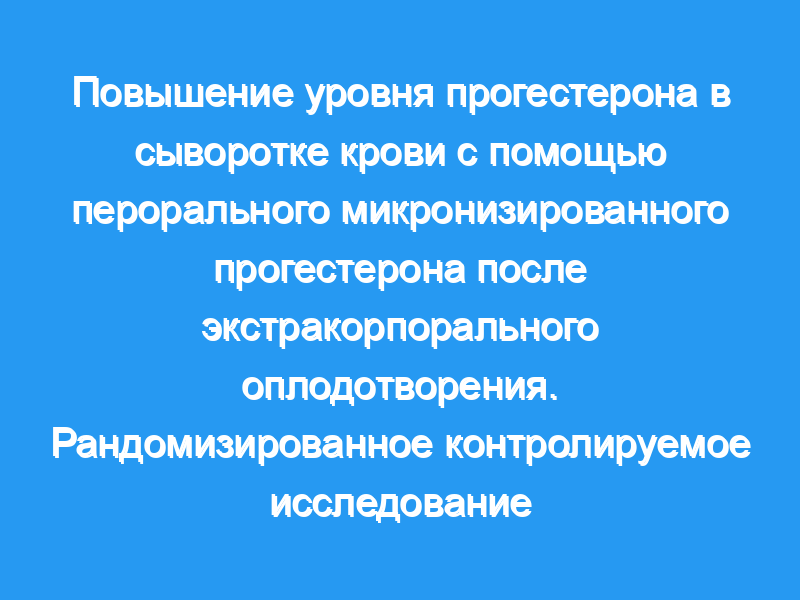 В рандомизированном контролируемом исследовании пероральный прием микронизированного прогестерона (Р4) эффективно повышал уровень Р4 в сыворотке крови в лютеиновой фазе после экстракорпорального оплодотворения (ЭКО). Из 34 циклов ЭКО без зачатия 12 были дополнены пероральным микронизированным Р4 по 200 мг четыре раза в день, начиная со дня извлечения яйцеклеток, в то время как 22 контрольных цикла не получали добавки.