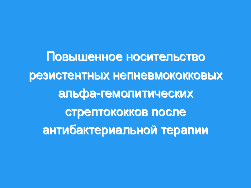 Сто шесть детей завершили 2-недельное и 2-месячное наблюдение соответственно. Частота носоглоточного носительства непневмококковой АГ увеличилась с 14% до лечения до 32% при 2-недельном наблюдении (Р =0,02) и была одинаковой в обеих группах лечения. Напротив, носительство S. pneumoniae снизилось с 51% до начала терапии до 27% при 2-недельном наблюдении (Р =0,002). Носительство устойчивых к пенициллину штаммов AHS (минимальная ингибирующая концентрация >, 1 мкг/мл) увеличилось с 9% до лечения до 26% через 2 недели и 36% через 2 месяца.