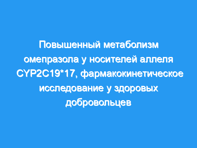 Что уже известно об этом предмете: Единственное существующее исследование изменений фармакокинетики лекарств, связанных с CYP2C19*17, было ретроспективным и сравнивало метаболические соотношения препаратов. Аллель CYP2C19*17 был связан с двух- и четырехкратным снижением метаболических соотношений омепразола и S/R-мефенитоина. Что добавляет это исследование: В этом исследовании была охарактеризована фармакокинетика однократной дозы омепразола, а также метаболитов 5-гидрокси и сульфона в CYP2C19*17/*17 и CYP2C19*1/*1 субъекты. Наблюдаемые различия в AUC омепразола (бесконечность) позволяют предположить, что аллель CYP2C19*17 является важным фактором, объясняющим отдельные случаи неэффективности терапии. ЦЕЛЬ ИССЛЕДОВАНИЯ — изучить влияние аллеля CYP2C19*17 на фармакокинетику омепразола, широко используемого исследуемого препарата CYP2C19, у здоровых добровольцев.