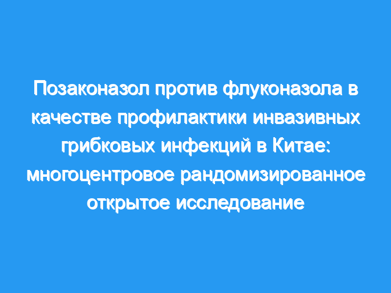 В это многоцентровое рандомизированное исследование в Китае были включены пациенты с ОМЛ и МДС с персистирующей нейтропенией, вызванной химиотерапией. Профилактика позаконазолом или флуконазолом проводилась в течение максимум 12 недель или до тех пор, пока пациенты не оправились от нейтропении и не достигли полной ремиссии или не наступил ИФИ. Первичной конечной точкой была частота подтвержденных, вероятных или возможных МФИ во время лечения. Частота клинических неудач, смертность от всех причин и время до начала системного противогрибкового лечения были вторичными конечными точками.