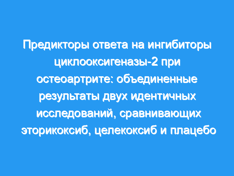 Данные были объединены из двух идентичных 26-недельных двойных слепых рандомизированных исследований flare design, в которых сравнивались эторикоксиб в дозе 30 мг/сут (N=475) и целекоксиб в дозе 200 мг/сут (N=488) и плацебо (N=244) у пациентов с ОА бедра или колена. Этот анализ был ограничен 12-недельным плацебо-контролируемым периодом. Ответ на 12-й неделе определяли с использованием показателей результатов клинических испытаний в ревматологии и критериев Международного общества по исследованию остеоартрита (OMERACT-OARSI). Факторы были проанализированы с использованием логистической регрессии и включали возраст, расу, пол, индекс массы тела, индекс суставов, скрининг (до промывки) и исходные данные (после промывки) Университетов Западного Онтарио и Макмастера (WOMAC), индекс боли при остеоартрите, физическую функцию и скованность, а также глобальную оценку состояния пациента, предшествующее применение НПВП/коксиба или ацетаминофена, функциональный класс Американской ревматологической ассоциации и продолжительность заболевания.