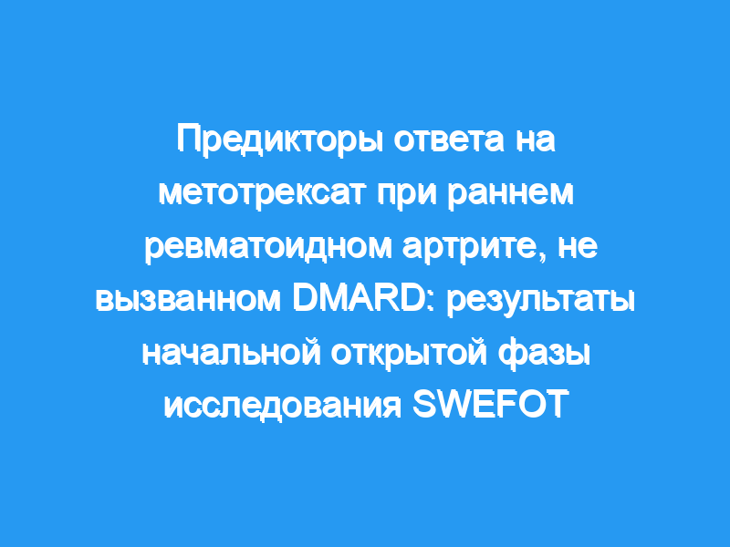 В исследовании SWEFOT пациенты с РА с длительностью симптомов менее 1 года начали монотерапию MTX (20 мг/нед) и 405/487 продолжали до 3-4- месячный визит. Основным критерием оценки результатов были критерии ответа Европейской лиги по борьбе с ревматизмом (EULAR), основанные на DAS28. Многофакторная логистическая регрессия использовалась для изучения связи между ответом и следующими исходными характеристиками: пол, возраст, продолжительность симптомов, привычки к курению, статус аутоантител, оценка по опроснику оценки состояния здоровья (HAQ), одновременный прием преднизолона и лечение нестероидными противовоспалительными препаратами. Показателями вторичного ответа и ремиссии были критерии Американского колледжа ревматологии и Простой индекс активности заболевания и Индекс активности клинического заболевания (SDAI/CDAI), полученные на основе критериев.